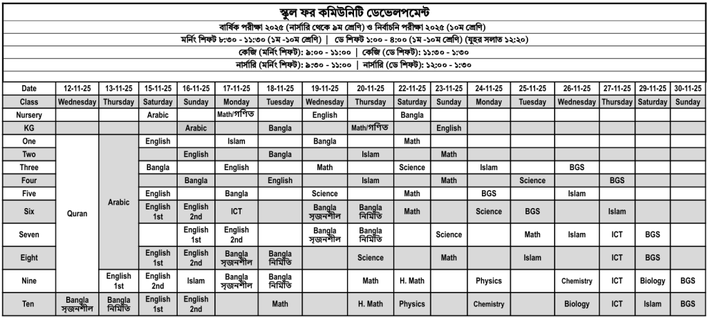 বার্ষিক পরীক্ষা ২০২৫ – রুটিন